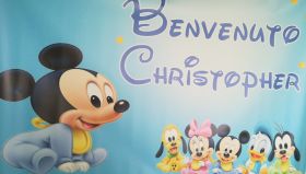 Striscione nascita baby personalizzato Benvenuto con topolino e topolina baby