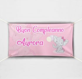 Striscione baby personalizzato con nome Buon 1° Compleanno con elefantino