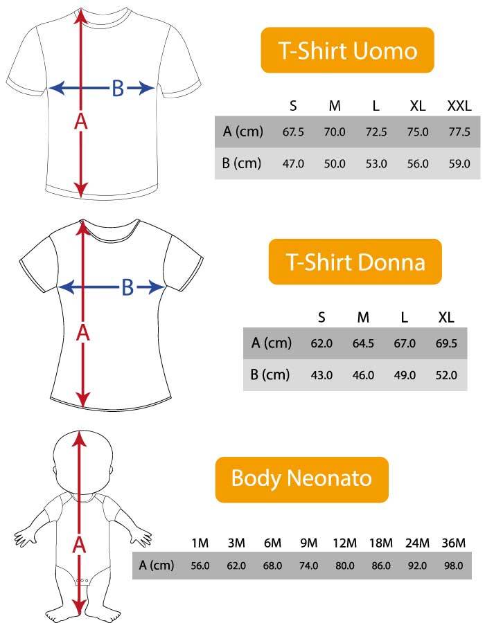 Taglie Body neonato disponibili: 1-3-6-9-12-24-36 Mesi