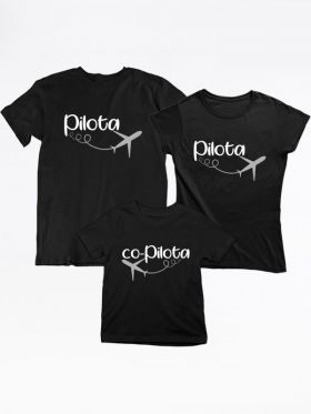 Tris di t-shirt per la famiglia personalizzato Pilota e Co-pilota