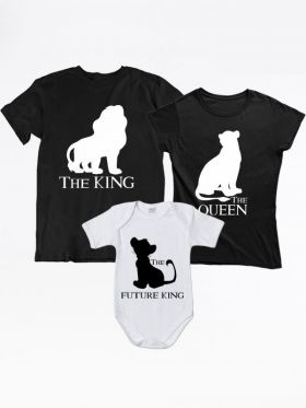 Tris di t-shirt per la famiglia con body neonato The King The Queen The Future King