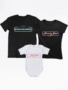 Tris di t-shirt per la famiglia personalizzato Bodyguards & Stars