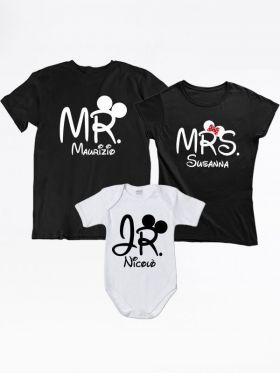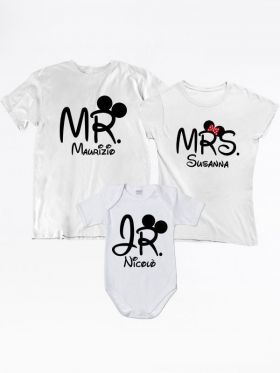 Tris di t-shirt per la famiglia personalizzato con nome con body neonato Mr Mrs Jr