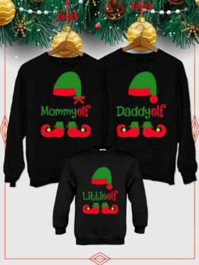 Tris di felpe natalizie adulto e bambino per la famiglia personalizzati Elfo