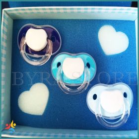 La scatola comprende: 3 succhietti con tettarella anatomico silicone in 3 misure diverse 0+mesi; 6+ mesi;12+ mesi