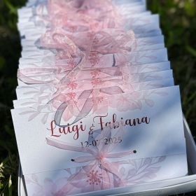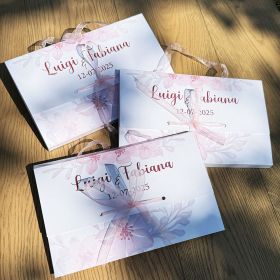 Ogni elemento può essere personalizzato con i vostri nomi, la data del matrimonio o una breve frase significativa, rendendo ogni wedding bag un ricordo indelebile del vostro giorno più bello.